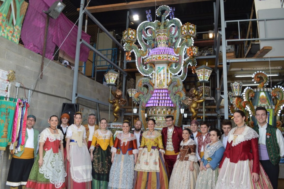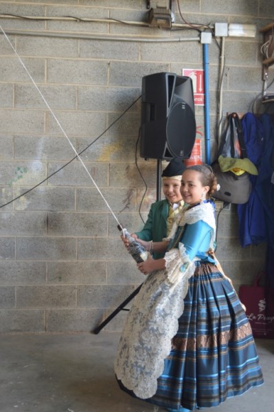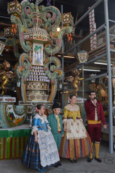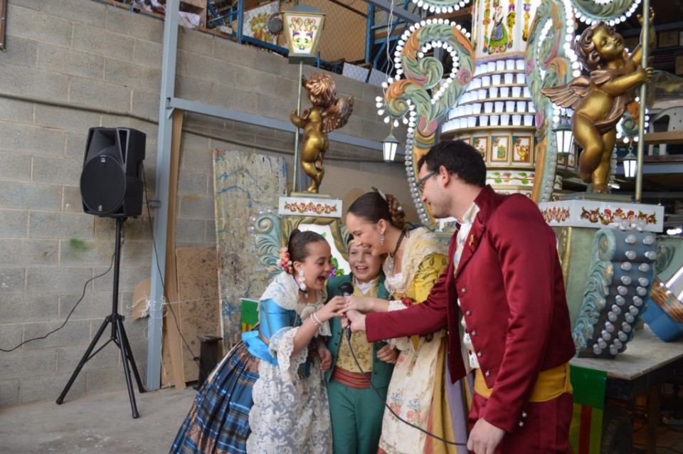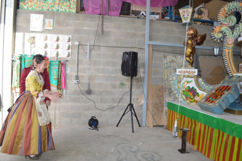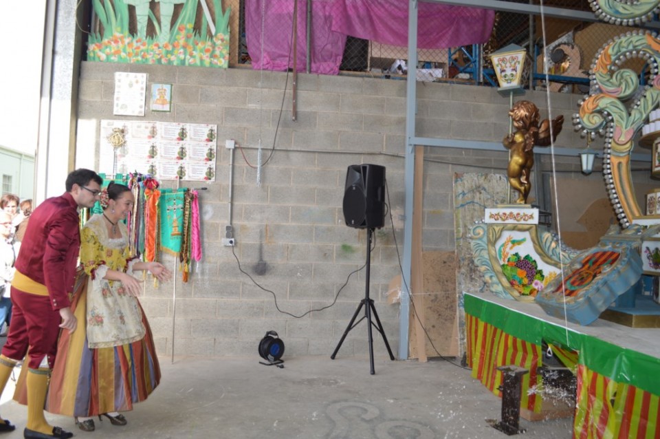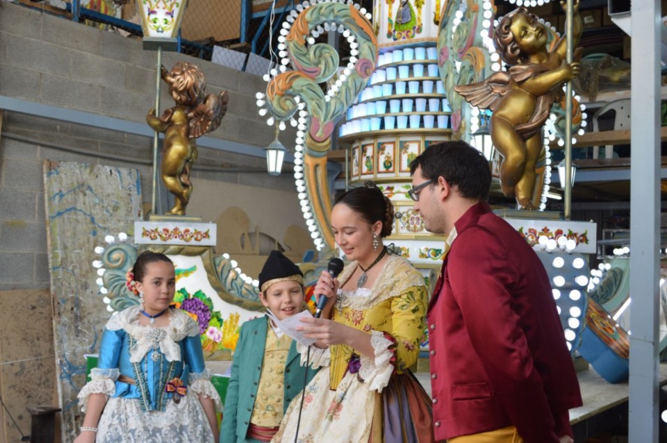 El acto contó también por un momento con la presencia de las reinas de las fiestas, Lola y Carolina que acompañadas por el presidente de la junta, Juan Vicente Bellido, se encontraban de visita a los almacenes municipales para comprobar in situ el estado de los monumentos gaiateros.