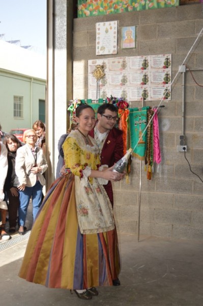 Acompañados por el olor a pólvora de la traca nuestros cargos procedieron al bautizo rompiendo sendas botellas de cava.