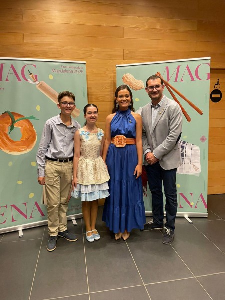 Nuestros representantes para la Magdalena 2025, Amanda Marmaneu Jiménez, Marc Planells Blasco i Clara Sanz Sobrino, los tres acompañados por nuestro presidente, Esteban Gual Ibáñez, asistieron a su último acto como máximos embajadores de nuestra comisión. Gracias por este magnífico año fiestero, por vuestra ilusión, por vuestra dedicación y para representar tanto bien los valores de Farola Ravalet.