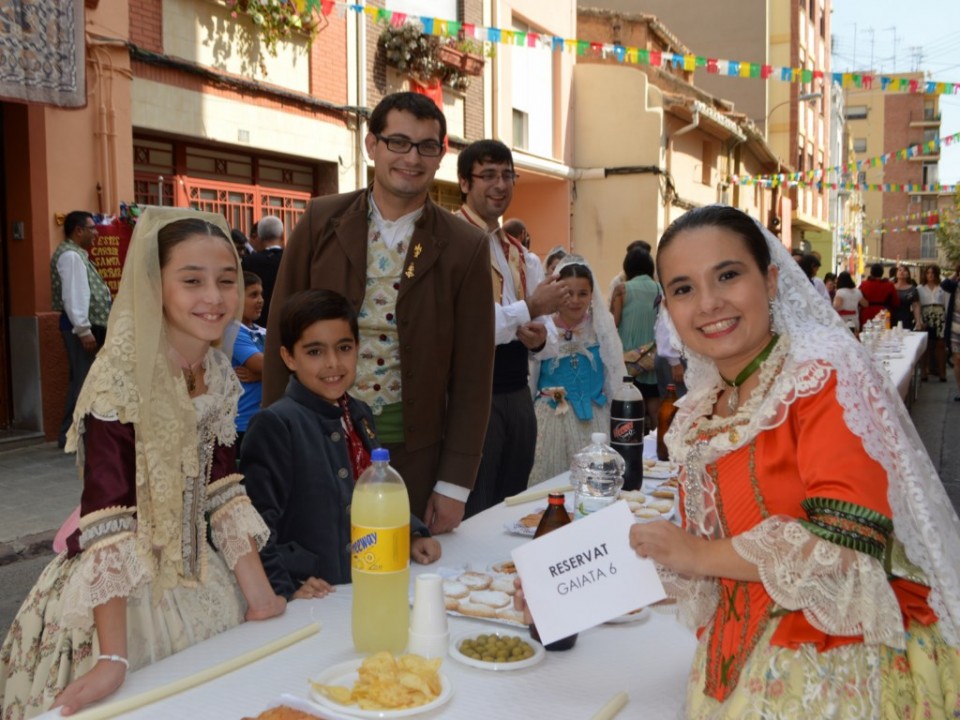 Desenes de veïns van acompanyar el diumenge 2 d’octubre en processó la imatge de Santa Bàrbara en la celebració del seu dia gran i en el marc de les tradicionals festes de carrer. En la processó han participat diversos col·lectius, i entre ells nostra Gaiata “FAROLA – RAVALET” amb els nostres màxims representants madrina Infantil Alejandra Gallen Montañes acompanyada del nostre president infantil Juan Cabello Pérez, la nostra madrina Andrea Piqueres Manase del braç del nostre president Esteban Gual Ibañez tot açò cortejat per la música de la dolçaina i el tabal. Així mateix van participar l’Associació de Festes de Carrer, les Gaiates 11 i 14, la Casa de València a Saragossa i les confraries de la Verge del Lledó, Medinaceli i Santa María Magdalena. A més, la imatge de la Santa acompanyada pels clavaris d’enguany, així com pels clavaris entrants, la Reina de les Festes, Estefanía Climent i les Dames de la Ciutat. La missa oficiada en l’Església de la Sagrada Família va estar presidida per la imatge de Santa Bàrbara. Després de la celebració, els actuals clavaris van imposar un corbatí en la bandera de la Santa i seguidament va tenir lloc un porrat popular en el carrer de la Santa, on van repartir el pa beneït.