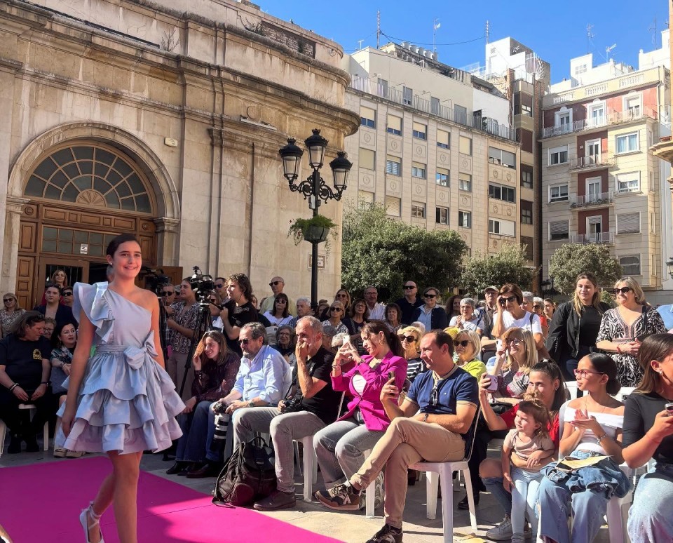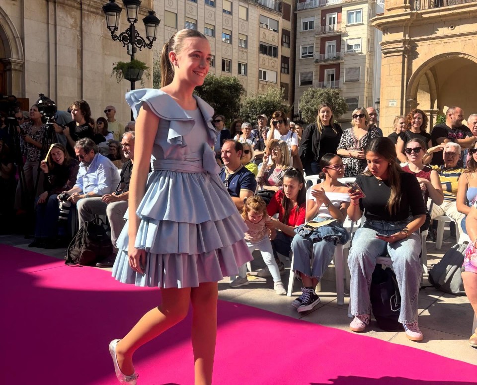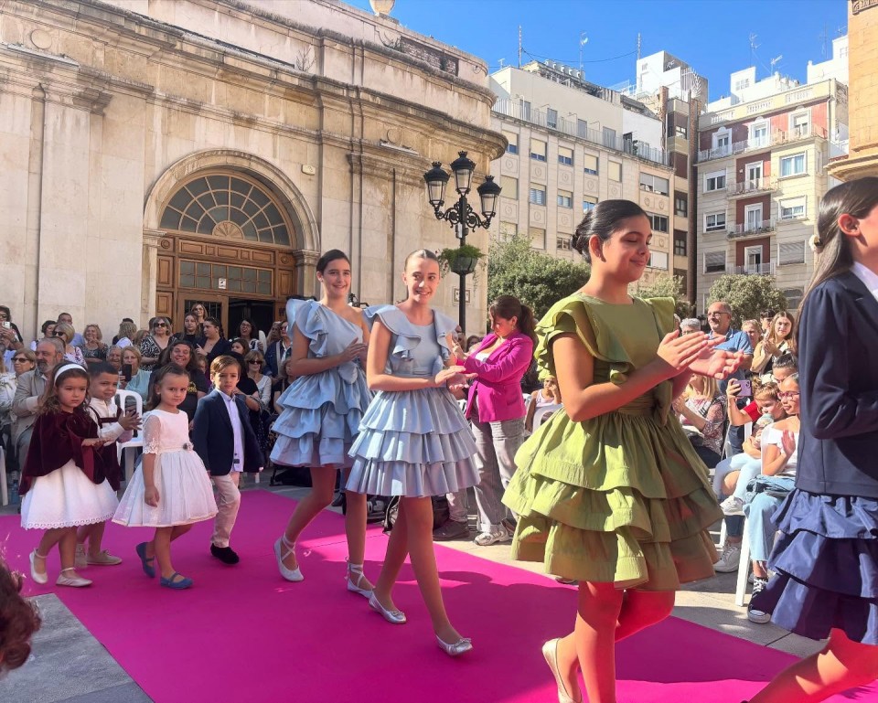 Después, acudimos a la plaza mayor para asistir al desfile de moda infantil y adulta, donde nuestra encantadora madrina infantil, Inés García, participó desfilando con Vannu. En el desfile también participó con la misma firma, Pilar Gimeno, madrina infantil 2024 y Dama de la ciudad infantil 2025.