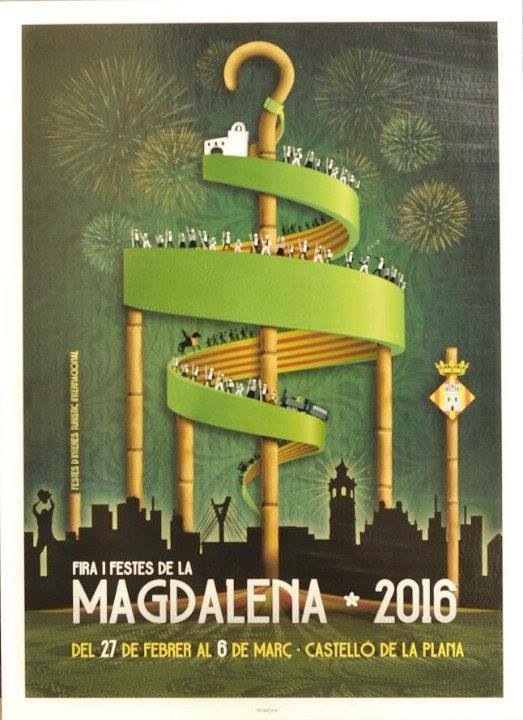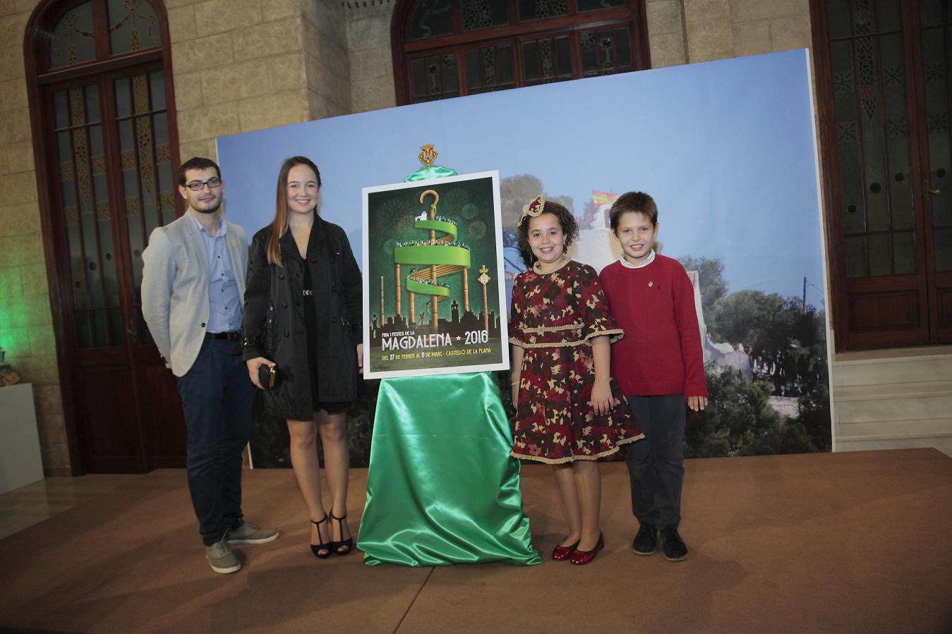 El viernes 30 de octubre a las 20 horas de la tarde nuestros máximos representantes, Rocío, Esteban, Claudia y Francisco fueron a la presentación del cartel ganador de las próximas fiestas. Y de entre 46 obras presentadas, la obra «ROMERÍA» de Iván Rodríguez Piquer se proclamó vencedora en el concurso de carteles Magdalena 2016. Desde la gaiata 6 le damos la enhorabuena a Iván, su magnífico cartel nos marca un poco más el inicio de la cuenta atrás para nuestras fiestas de la Magdalena 2016.