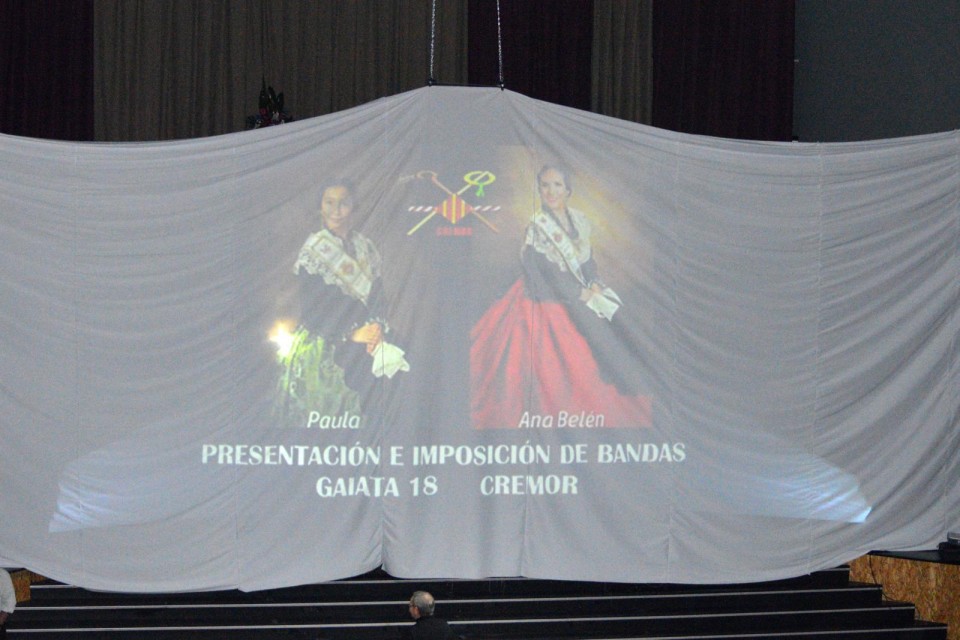 Sábado, tres de febrero, Palau de la Festa y esta vez tocaba la antepenúltima presentación de este ciclo. Fue el turno de la gaiata dieciocho “Cremor” para proclamar a sus madrinas para este año 2018, Paula Muñoz Trujillano y Ana Belén Nieto Ramírez, que vivieron una noche especial, junto a su presidente José Antonio Lleó Rubio.