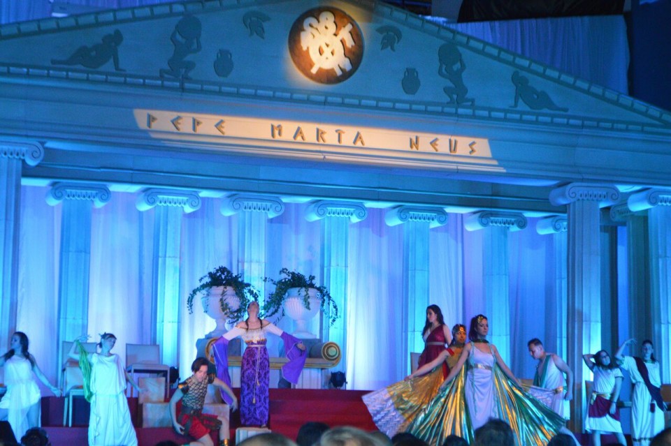 Dissabte passat onze de febrer, a la nit, va tenir lloc en el Palau de la Festa la penúltima presentació del cicle fester d’aquest 2017, abans dels homenatges i les galanies. Un acte marcat per elements tradicionals en els quals no va faltar l’Olimp de l’Antiga Grècia.