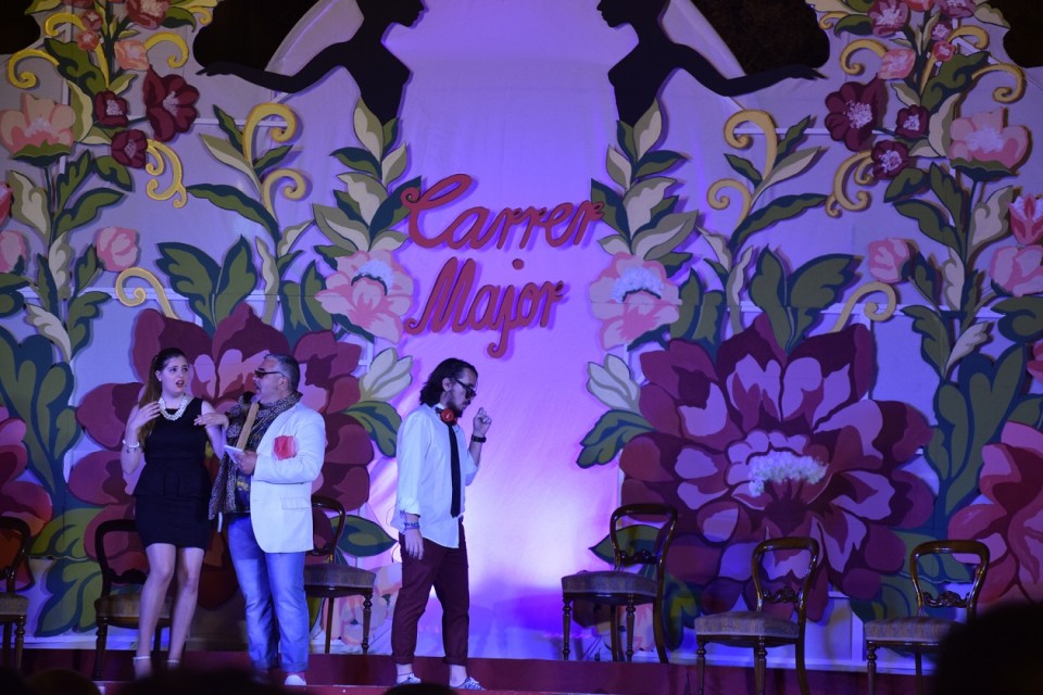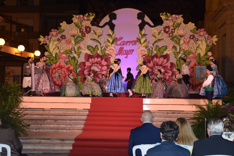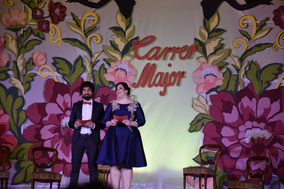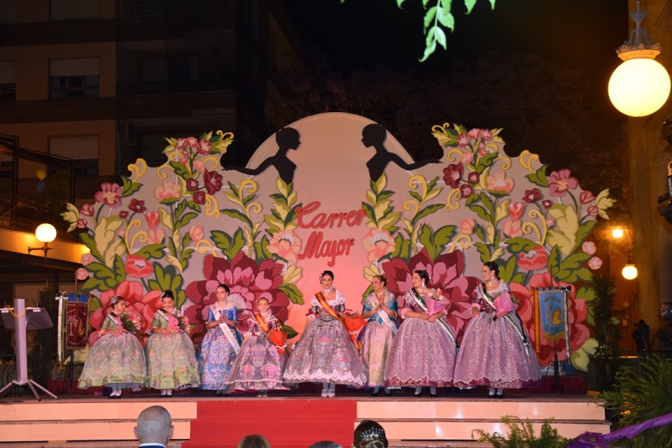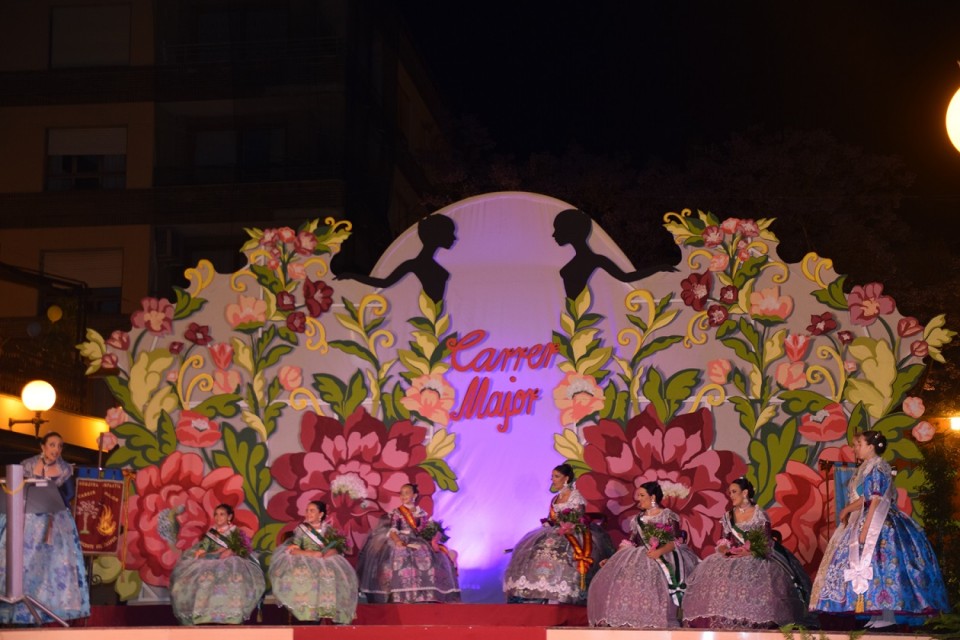 El pasado sábado día 21 de Mayo tuvo lugar la presentación de las bellezas y sus cortes de honor de nuestra hoguera hermana y amiga, Carrer Major de San Vicente del Raspeig. A las 22h en punto daba comienzo la gala del 20 aniversarió de la refundación de la hoguera perteneciente a la calle mayor y adyacentes. Como un gala de televisión comenzaron los presentadores del acto, José andres e Inés a nombrar a los participantes al escenario y entre ellos, las bellezas del 2016 para su emotiva despedida. Entre subida de cargos y cortes de honor el acto era amenizado por los presentadores que trataban de buscar entre tre distinguidos famosos del lugar, el embajador y pregonero de las próximas fiestas de hogueras de San Vicente.
